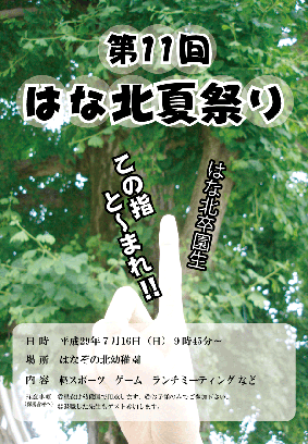 今年もはなぞの北幼稚園卒園生 1~3年生を対象に「はな北夏祭り~OB・OG会~」を開催します。