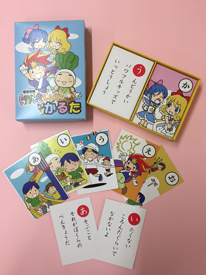 そんな中、カルタを通して外遊びの大切さを伝え、書かれている言葉の内容を吸収していってもらいたいと考え、オリジナルカルタを作成しました。とってもかわいらしいカルタになりました。