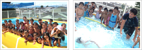 東舎屋上にあるプールでは6月下旬から8月終わりまで天気のいい日は毎日プール遊びを楽しみます。