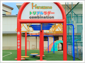 ただの「うんてい」ではありません。丸や三角といった持ち手が並んでいます。自分でどれにしようかな?考えながら楽しく出来るはなぞのオリジナルの遊具の一つです。