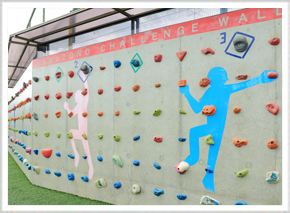 幼稚園では珍しい本格的なクライミングウォールです。自分の身体を思い通りに操れるよう考えながら登ったり、横に移動したりします。